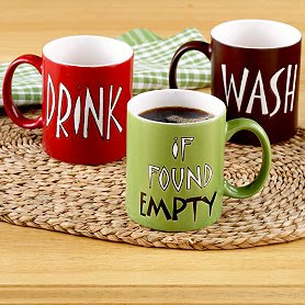 My favorite one is the one that says “If Found Empty, Fill.” No one would ever stumble upon a coffee mug of mine that was full. Dirty, perhaps.
