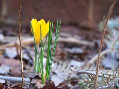 There is life in that flower bed! I had no idea! And a crocus, no less.