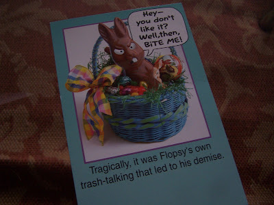 The interior message says, ‘Hope your Easter doesn’t bite.’ The MM has a talent in selecting greeting cards, and she takes that talent seriously.